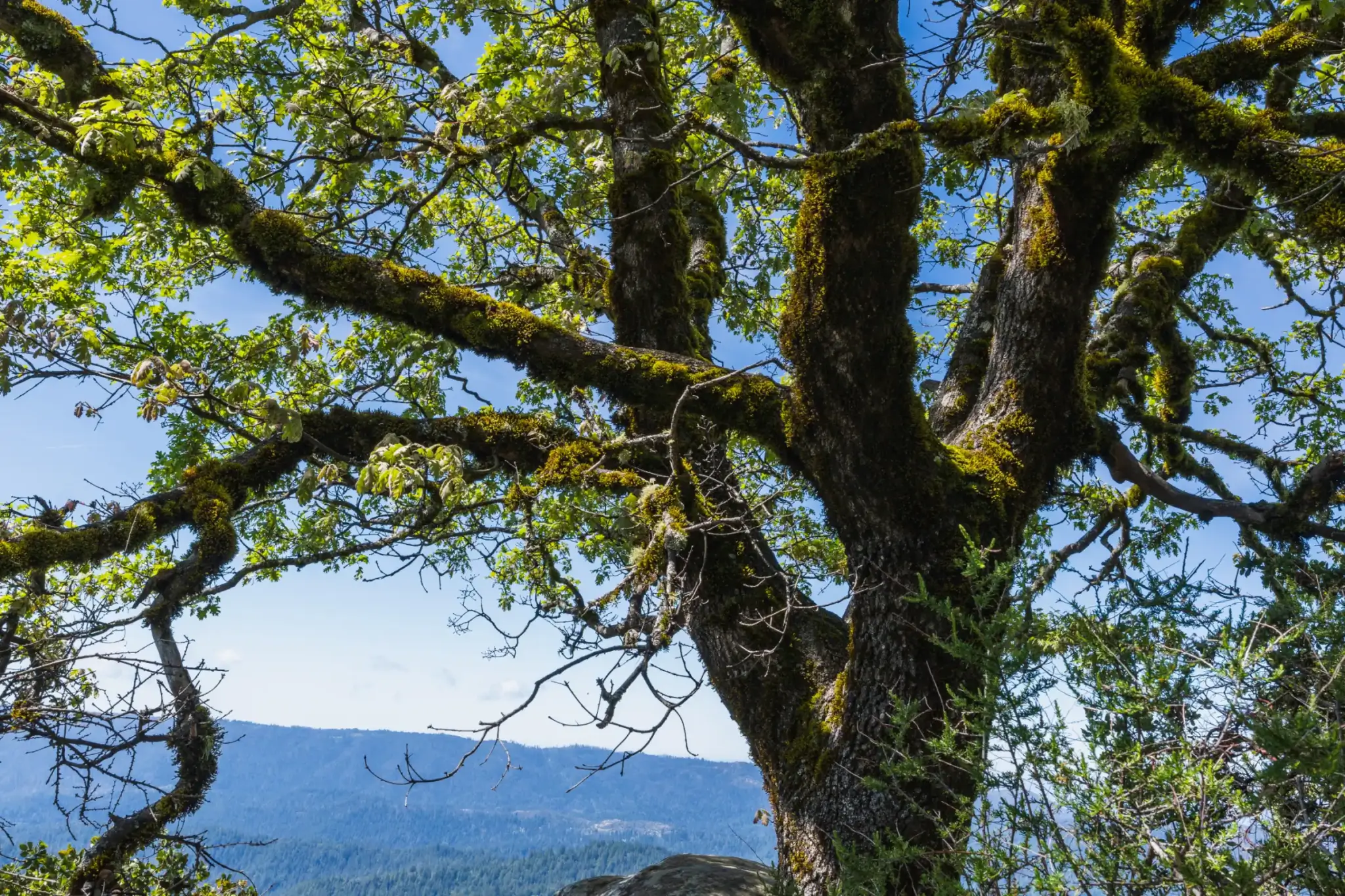 The high vantage point of the Castle Rock trail allows us to take in a vast landscape, gazing miles into the distance, high over the treetops. Many people spend the majority of their time indoors, often gazing at screens and monitors. The act of gazing at wide landscapes is a great break for the brain and eyes and is something we should try to do regularly. Research has also described the "Cathedral Effect," in which thoughts and ideas become smaller and more analytical when we are in a room with a low ceiling, and that even small increases in ceiling height can promote more abstract thoughts and greater creativity. We can take this concept outdoors to a trail such as Castle Rock Falls when we need a boost of creativity and inspiration.